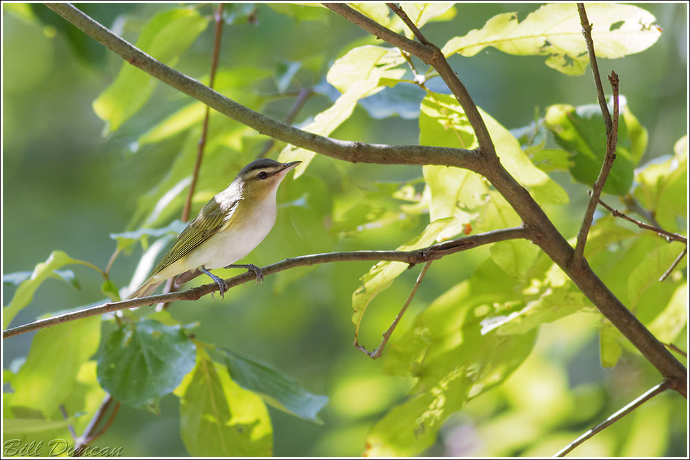 Hello again. Today I am starting a new blog series that I am calling “Mondays Are For The Birds” and today’s first spotlight bird is this Red-eyed Vireo. For anyone fool-hardy enough to do some summer hiking in the deciduous woodlands and forests of the Missouri Ozarks, the Red-eyed Vireo shouldn’t be new to you. When almost all other songbirds have given up claims to their nesting grounds and quit vocalizing for the season, the REVI is just warming up. In the middle of a sweltering summer’s day one will still hear the questions this guy’s song seems to ask. “Who are you, who am I, Here I am, Look at me, In this tree!”