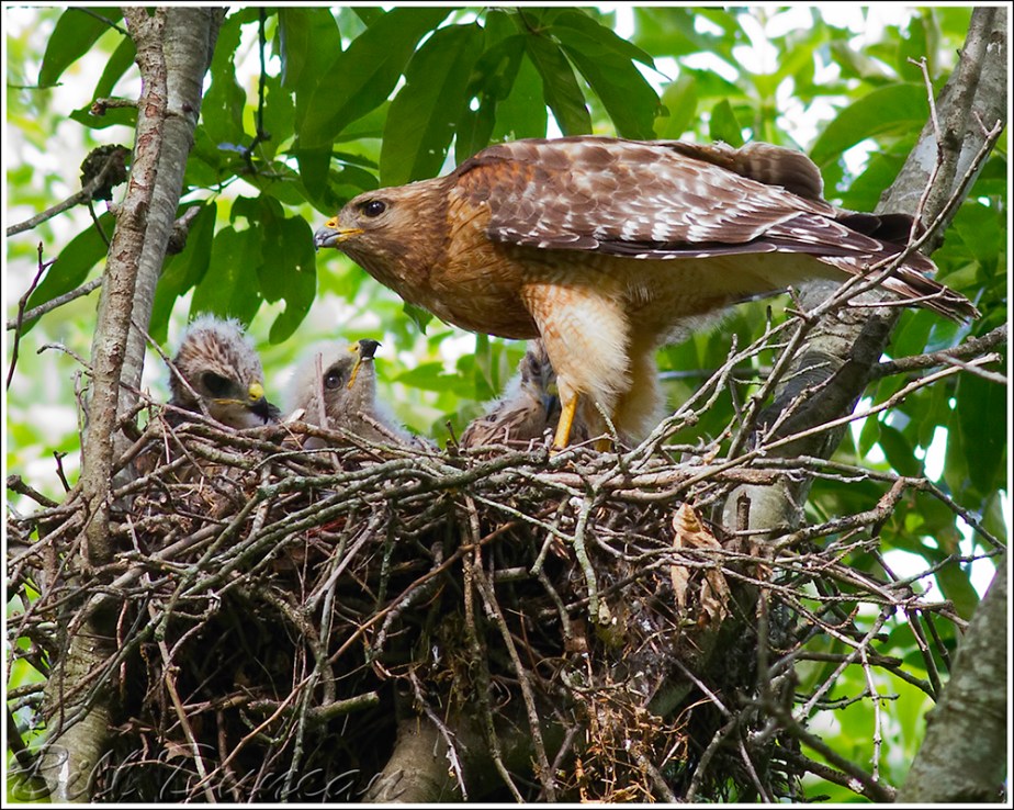Although I still have quite a few images from this year’s nest in my “to process” list, this one may be my favorite pic for the year. In this image the smallest chick, who was always the last to be fed, is looking up at mom and seeming to wonder where her share of the latest kill was. Mom is taking a break after tearing apart and passing out the meat. She has a look around before taking again to the wind to find more. While watching the nest I was always excited to see this small one be able to swallow down a large piece of meat and I was always prompted to send the camera’s mirror flapping.