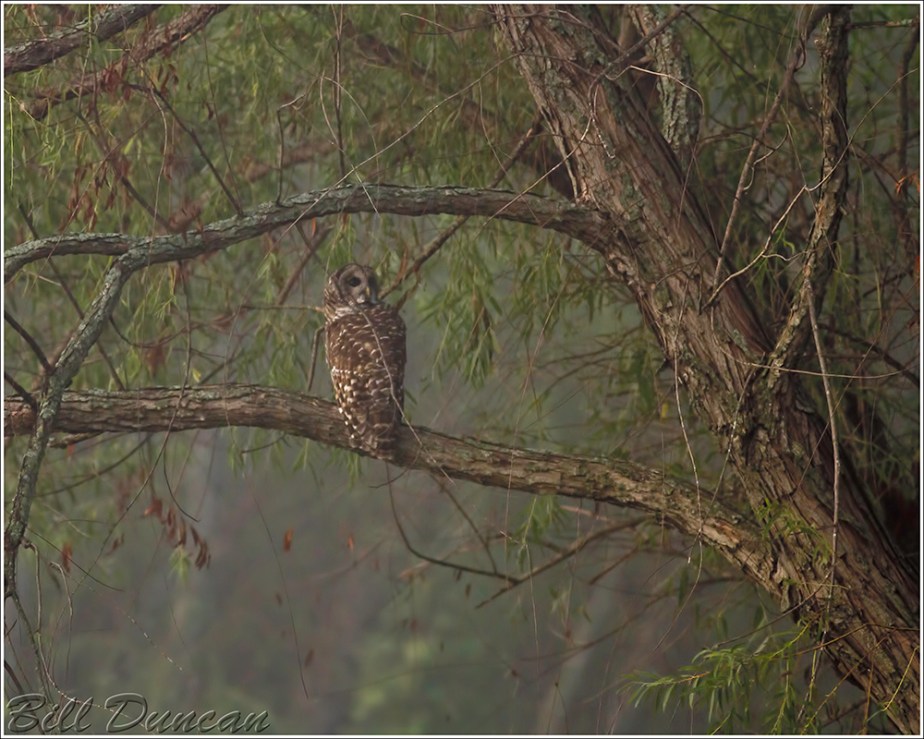 Easily one of my top favorites, Bill. So dramatic. Love how the browns and grays and whites of both owl and willow are nearly identical; a chameleon could do not better.