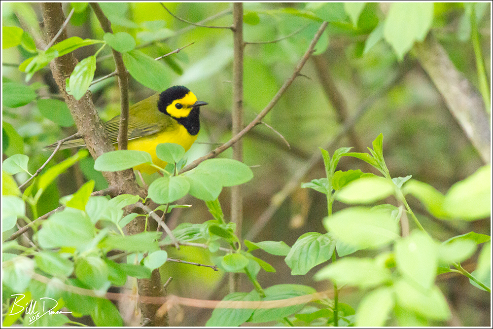 Here are a couple of pics of a Hooded Warbler that visited a favorite birding spot of mine a couple of weeks ago.  Quite low light on a cloudy early morning, so I apologize for the grain and poor detail.