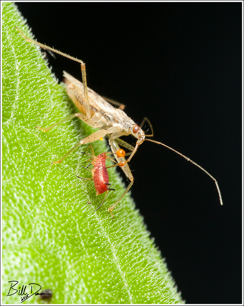 I caught a glimpse of this guy early one morning patrolling around the surfaces of my rosinweed and decided to watch. I didn’t wait long to observe the hunt. This bug is definitely in the family Nabidae, and I am going to call this one the common damsel bug, Nabis americoferus, due to it matching a few photos and the fact that this is considered to be the one of the most common hemipterans in the United States.