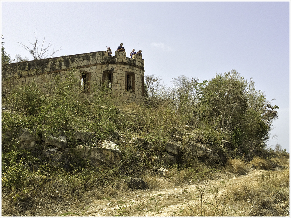 Always a good idea while out in wild areas, but definitely a good idea in PR is to use a GPS device.  Every map I could find was deficient in more ways than one.  The GPS unit I found to be the best during my visit was the map app on my iPhone.  Also, as you might have guessed, the Guanica Dry Forest is DRY.  Bring plenty of water.  I thought the three liters I brought on this hike was a bit of overkill.  However, at the end of my ~ eight miles of hiking up and down these coastal hills under extreme heat and sun, I was completely dry.   I decided to head out on the most promising of the retired forest road trails and it wound up being the one I hoped it was, leading me to the coast where I was to find Fort Capron that was built by Americans in 1898 and is really more of a lookout tower.  There is also a lighthouse nearby, but not all that interesting either.