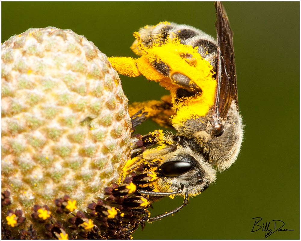 Tonight we have a couple of native bees photographed this summer at Shaw’s Nature Reserve. I may very well be incorrect, but I believe the bee pictured above is a Mining bee in the family Andrenidae. I would love to know how much pollen is taken away in a season by these guys.