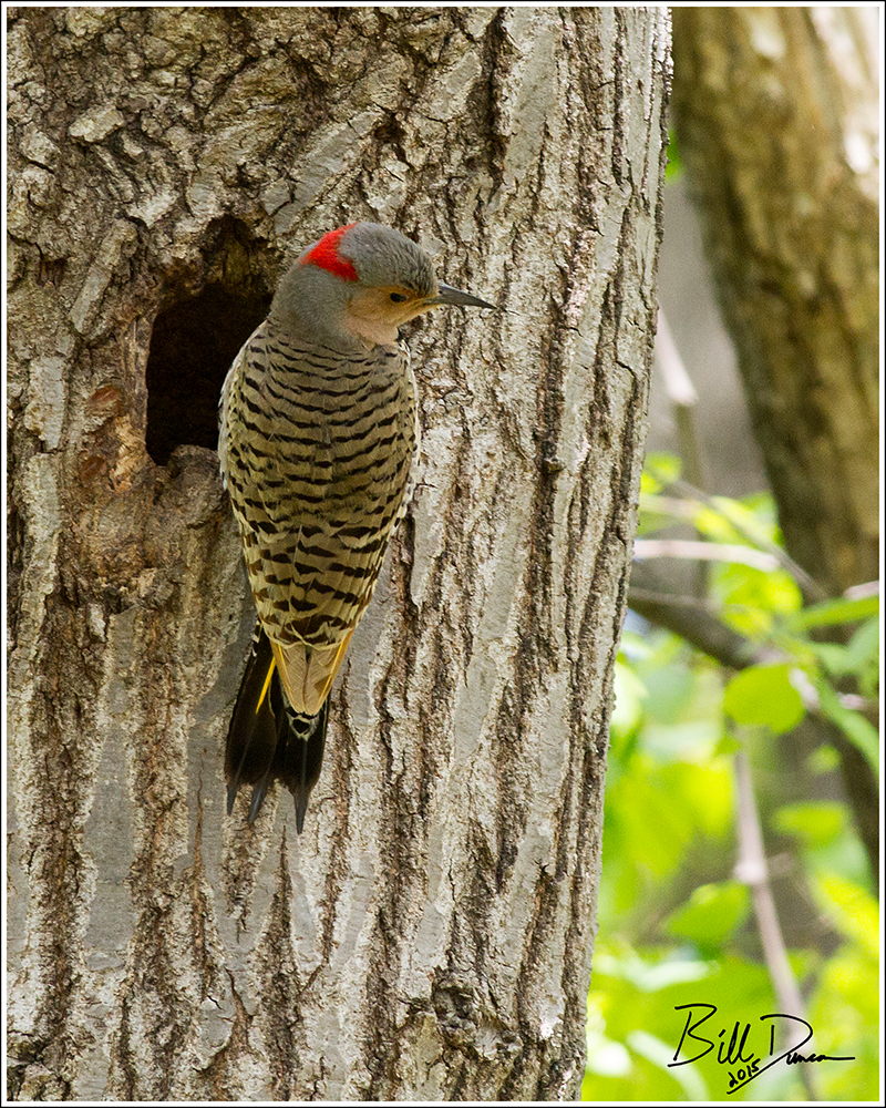 Earlier this spring I watched with anticipation as a pair of Flickers inspected a potential nest cavity in a wood lot where I work. I watched over several mornings as they came and went and made a ruckus. Here, the male admires the view from the front door.