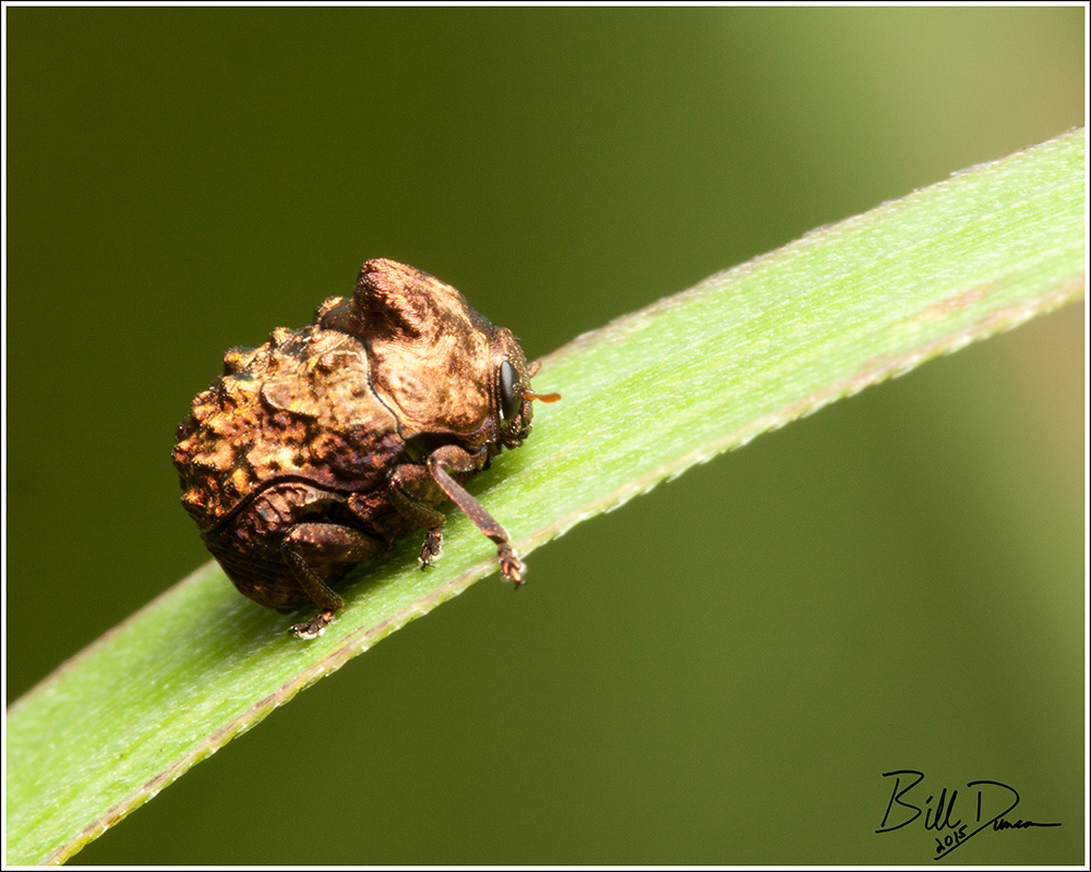 Moving from bird droppings to the droppings of a caterpillar we come to this fascinating creature that is most often found on raspberry bushes. A member of the diverse family of beetles – the Chrysomelidae, this Warty Leaf Beetle (Pacybrachis nigricornis), will tuck in its appendages and drop, looking exactly like a caterpillar’s droppings, or “frass” (anyone remember the action figures from the 80s, the Rock Lords?).