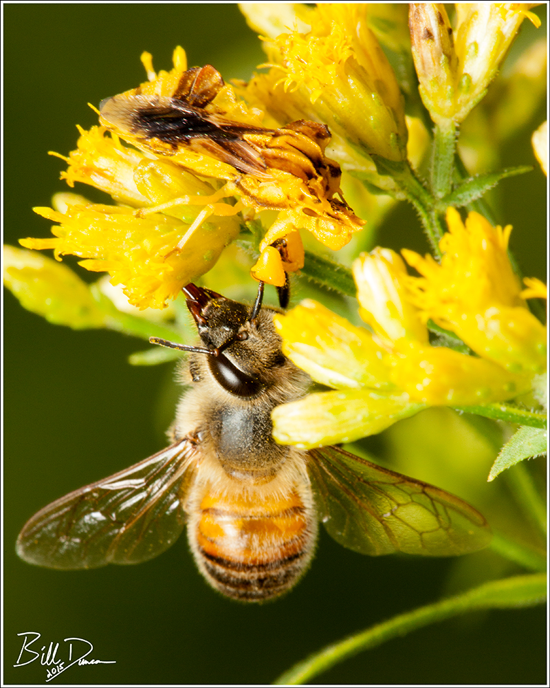 In the image above, this goldenrod flower came to life to ambush a Honeybee. I find that Honeybees are the most often caught in traps like this. Native bees seem to be constantly on the move and much more defensive, most likely due to the fact that they are solitary and there would be nobody to care for the brood if they were more care free like the honeybees.
