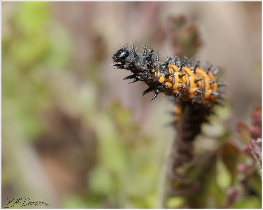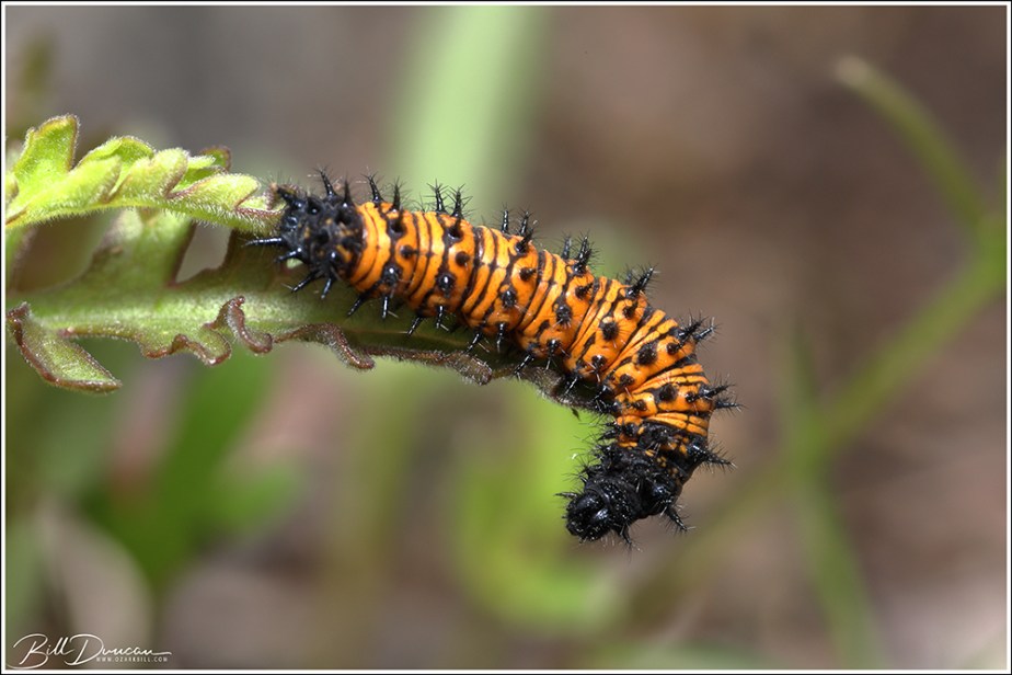 The main distinction that separates this purported subspecies is habitat and host plant preference. The primary habitat for E. phaeton phaeton is marshy wetlands, while E. phaeton ozarkea prefers oak woodlands. The primary host plant for E. phaeton phaeton are the turtleheads (Chelone sp.) while E. phaeton ozarkea primarily uses false foxglove (Aureolaria grandiflora). These animals will overwinter as caterpillars and then will often find new host plant species the following year – as shown in these photographs, they are using lousewort (Pedicularis canadensis). They will then pupate in May to June of their second year.