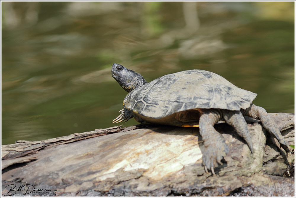 Birds were not the only ‘reptiles’ I was able to get close to on this outing. This is an age-induced melanistic male red-eared slider (Trachemys scripta elegans) who was bold enough to stay on his sunning perch after his smaller conspecifics had fled to the water.