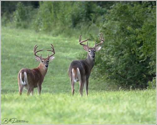 A few more white-taileds from August. Have a look at the next three images. I’m hoping someone with some knowledge in the genetics of these guys might have some idea what is going on with the buck on the right. With his rack and size, he obviously has the genes, but he looks so different from what I think we would agree is a more typical buck next to him. In addition to the shapes of their heads and faces, their coats are vastly different as well. Thanks for sending any thoughts you might have about what these difference might be caused by.