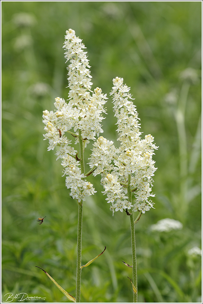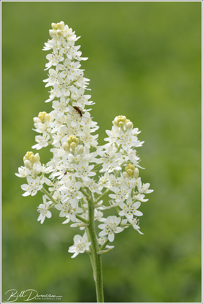 Melanthium virginicum (Illinois bunchflower) in full bloom in June being visited by pollinators.