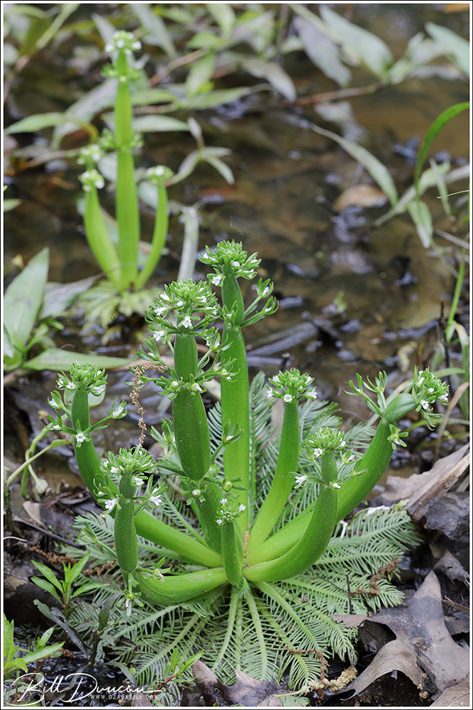 Many thanks to Stephen, Pete and Casey for introducing me to this special plant this spring. Hottonia inflata, or American featherfoil, is ranked as imperiled (S2) in the state of Missouri and is a species of conservation concern in most states within its range. The destruction of wetlands habitats in the U.S. is the cause of the scarcity of this winter annual member of the primrose family (Primulaceae). The stems of this plant are spongy organs filled with air pockets and are the characteristic described in the specific name – inflata.