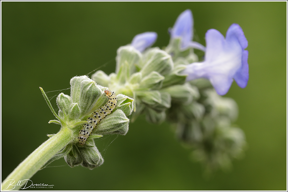 All three of the Salvia azurea I planted in the front bed did very well this year and even played host to an equally gorgeous moth, Pyrausta inornatalis.