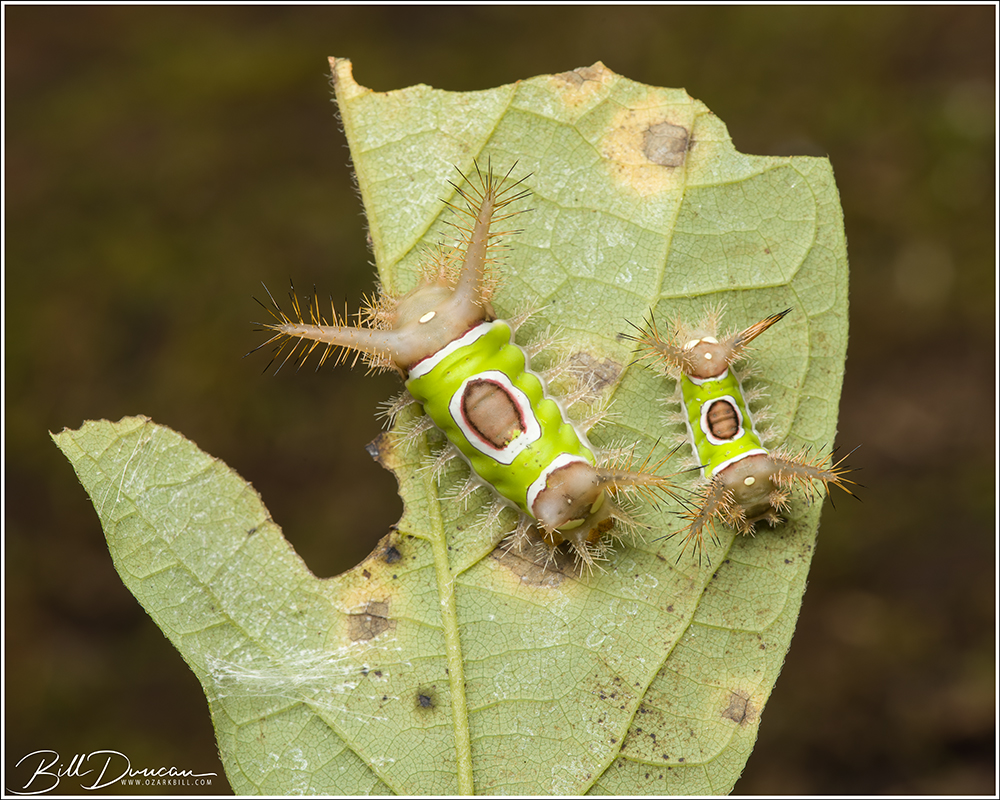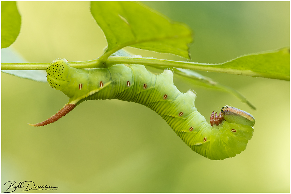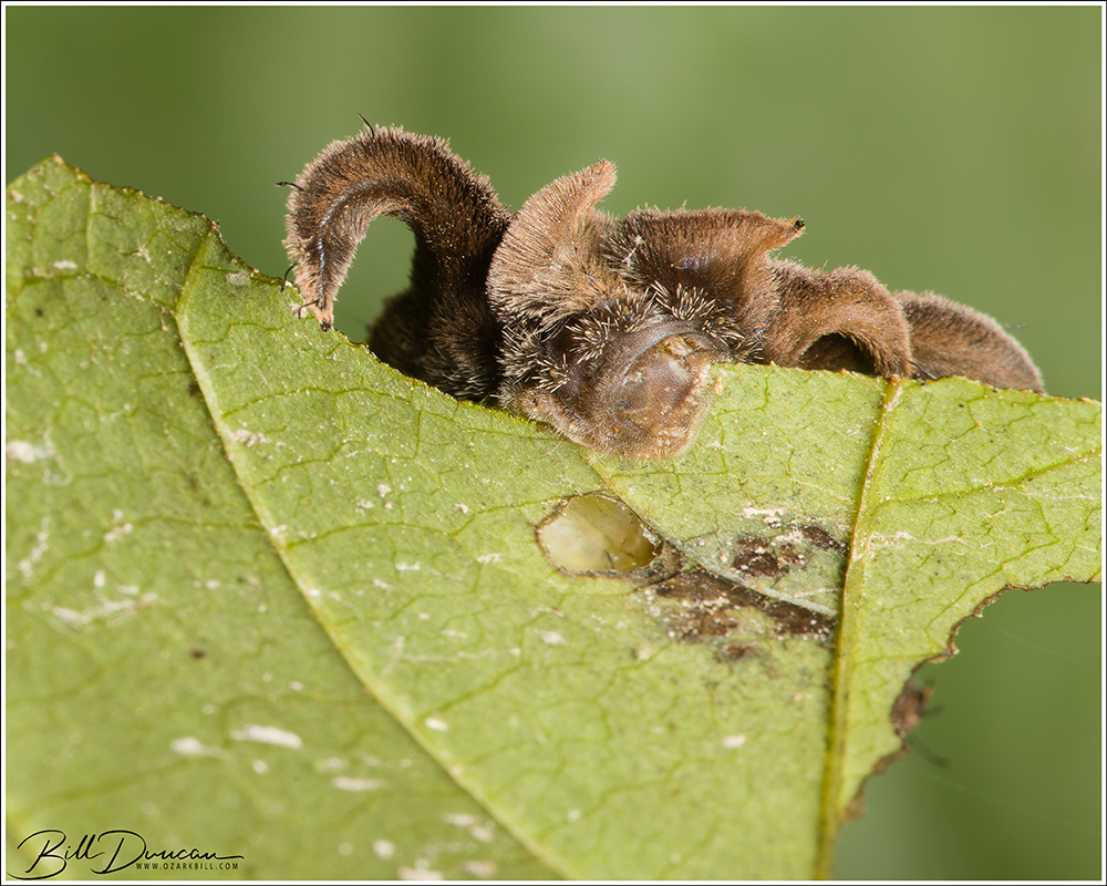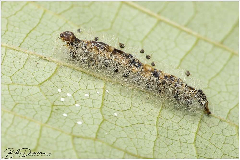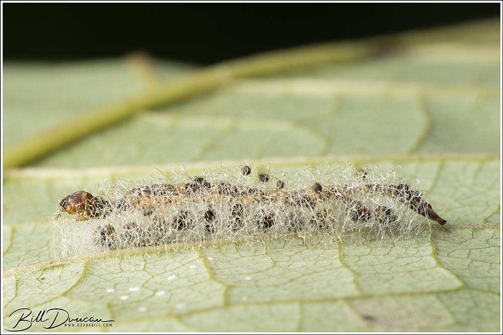 Sarah and I traditionally conduct a caterpillar hunt on the weekend of her birthday in mid-September and 2022 was no different. This year we headed to Meramec State Park. I had recently heard of a short trail that covered the lush river bottom and contained hundreds of pawpaw trees. My hope was to find caterpillars of zebra longwing butterflies – a cat that has been elusive despite my many attempts at finding a late instar to photograph. We wound up short of this goal again, but we did find quite a few interesting species. I know Sarah will want me to mention that she did indeed win the day by finding more cats than I did. 🙂