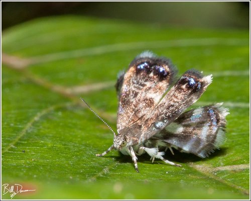 Here is another set from the bowels of Facebook that I wanted to make sure gets captured here. This is the diurnal metalmark moth (Choreutidae), Brenthia pavonacella (Hodges #2627). It is known as the peacock brenthia, due to its unusual mating display behaviors that can be seen here.