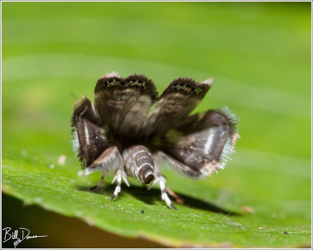 Here is another set from the bowels of Facebook that I wanted to make sure gets captured here. This is the diurnal metalmark moth (Choreutidae), Brenthia pavonacella (Hodges #2627). It is known as the peacock brenthia, due to its unusual mating display behaviors that can be seen here.