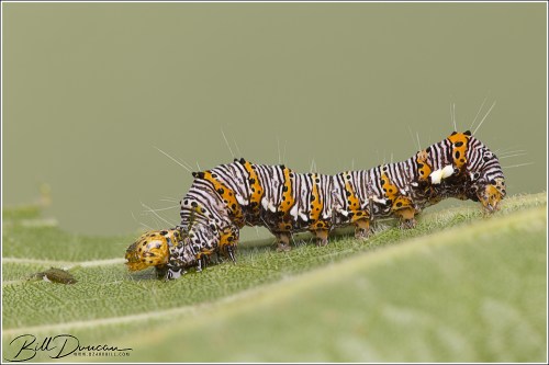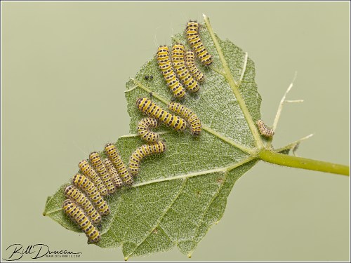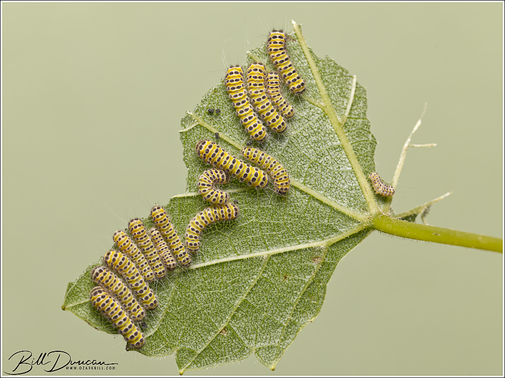 Two caterpillar species today, each commonly found on the native grapes (Vitis sp.) in Missouri. First up is the Noctuid species Alypia octomaculata (eight-spotted forester moth). These guys are stunning as both larvae and adults.