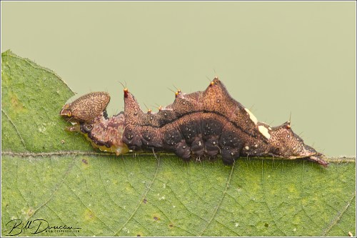 Tonight we have a common, but fantastic member of the Notodontidae Family. The black-blotched schizura (Schizura leptinoides #8011) is most often found on hickory and walnut, but can be found on other woody plants as well. The two cats I found this season were both found on low hickory branches.