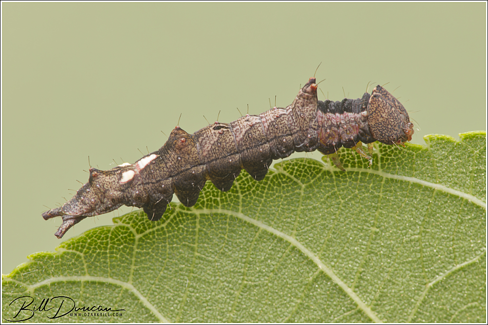 Tonight we have a common, but fantastic member of the Notodontidae Family. The black-blotched schizura (Schizura leptinoides #8011) is most often found on hickory and walnut, but can be found on other woody plants as well. The two cats I found this season were both found on low hickory branches.