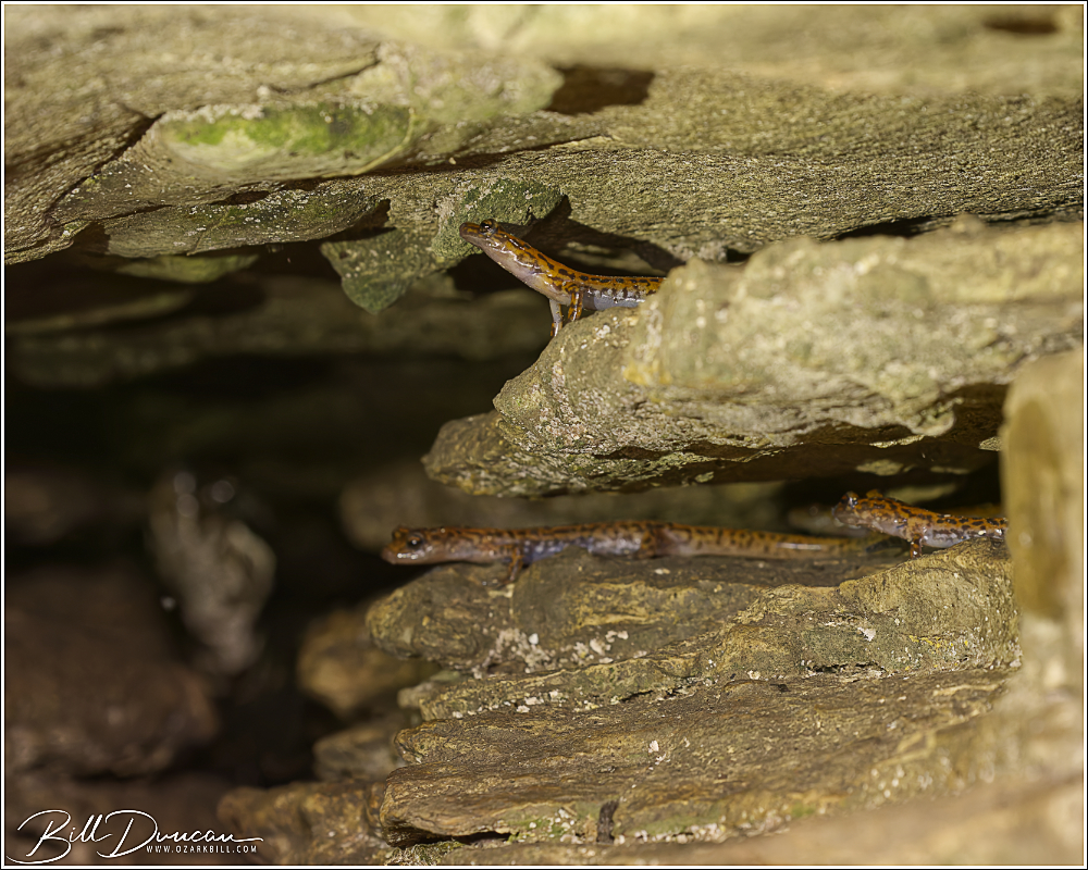 Cave Salamanders and an unexpected guest. Can you find the cottonmouth?