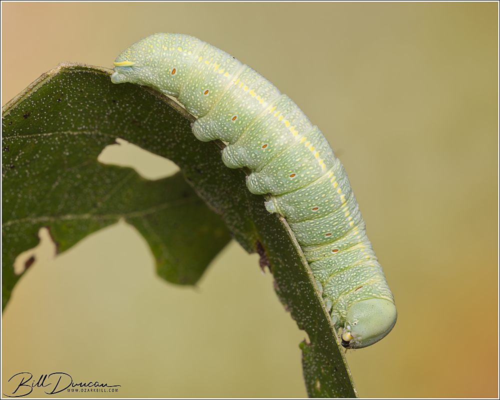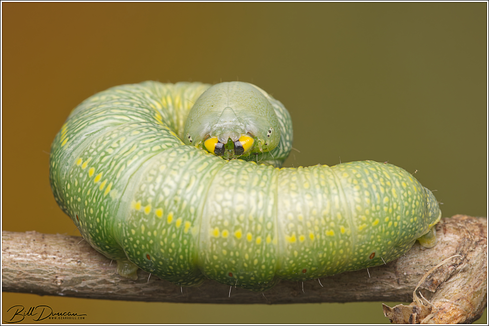 Notes: When threatened, caterpillars of this species curl their heads over their bodies exposing their large yellow, black-tipped mandibles.