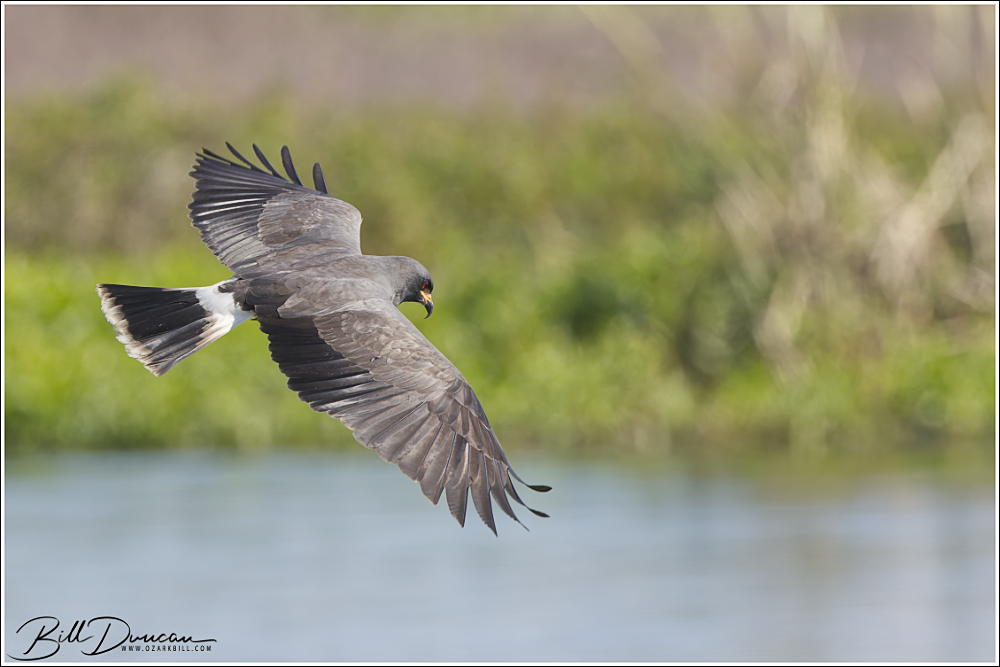 A Snail Kite moving along the lake edge with a constant eye for a nice-sized apple snail.