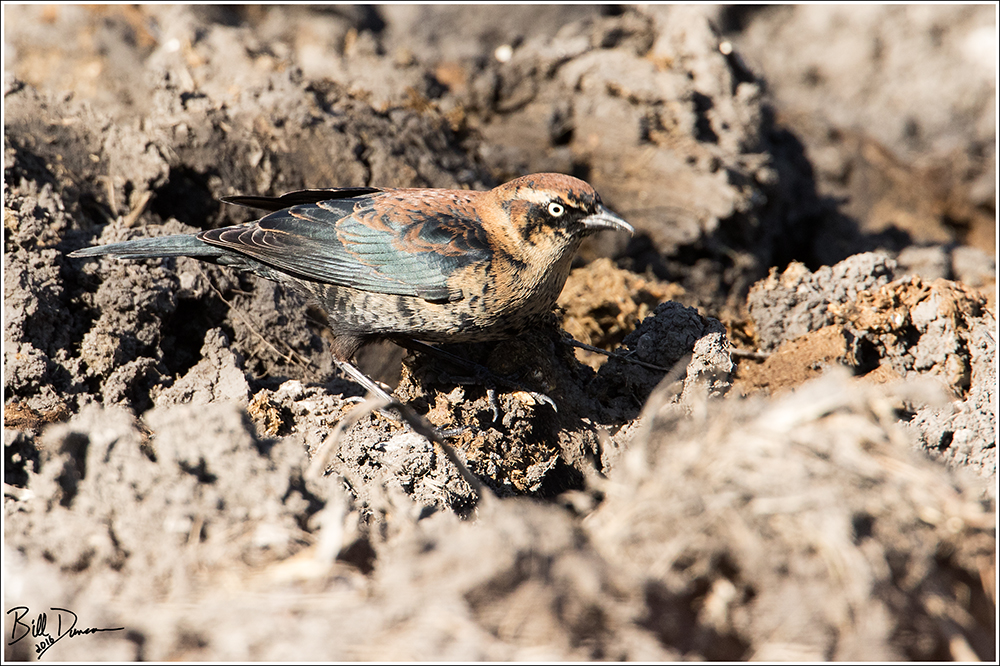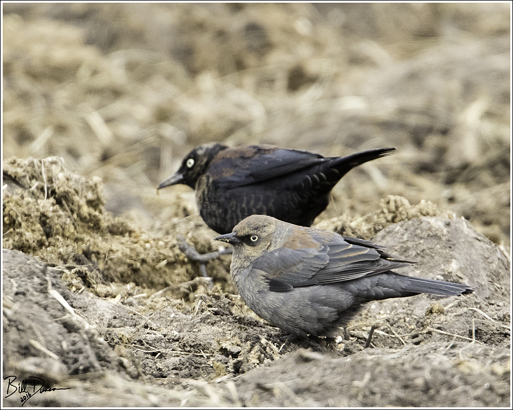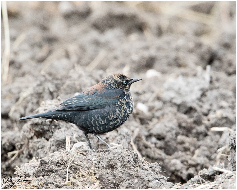 Rusties exhibit an interesting variability in plumage throughout winter and spring, as can be observed in the different birds photographed in this post. Males are dressed with varying amounts of the rusty warm color that gives this species its name. This coloration is located on the tips of newly emerged feathers during the molt. As these fine feather tips wear and break off, the males will become primarily black and luminescent in summer breeding plumage. Female Rusties are even more interestingly plumaged, with tans, browns and blues.