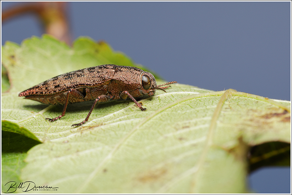 Dicerca pugionata (Buprestidae) on its host plant, ninebark (Physocarpus opulifolius)