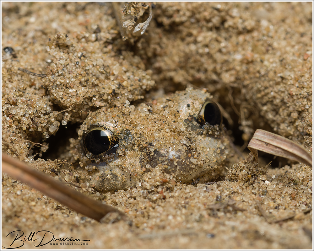 This year’s visit was perfectly timed for my primary photography goal, which was to photograph this species during amplexus. Our first stop was at a sand-prairie habitat where the frogs use small plastic basins that are set into the ground in order to keep the standing water these frogs need to deposit eggs and the resulting tadpoles need for their development. In addition to these artificial basins, the land mangers at this and a nearby sand prairie tract have recently installed larger ponds with liners to retain water long enough to see the frogs through their development cycle without the need to worry about egg-predating fish. These ponds were only installed this winter, however, and cover-providing vegetation and structures in the water are not yet established. We only found a couple of frogs at these locations but hopefully these new ponds will support a strong breeding population in years to come.
