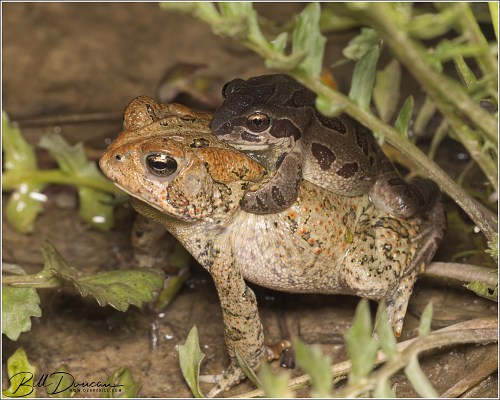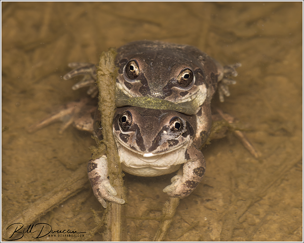 When male frogs are in a perfect situation such as this, they are eager for ANY opportunity. If it moves and in any way matches their search pattern – namely, any other frog, they are known to grab and hold on, whether that be a conspecific female or male, or sometimes something even more, shall we say, less evolutionarily appropriate…