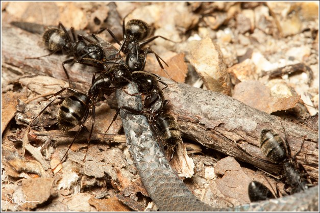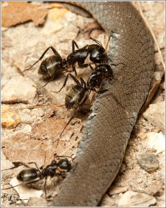 Black Carpenter Ants Feasting On Ring-necked Snake