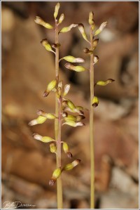 Corallorhiza odontorhiza. These are cleistogamous flowering stems that Casey and I monitored from just after emergence. The flowers never opened and ovaries began to swell prior to the flowering stems reaching their full height.