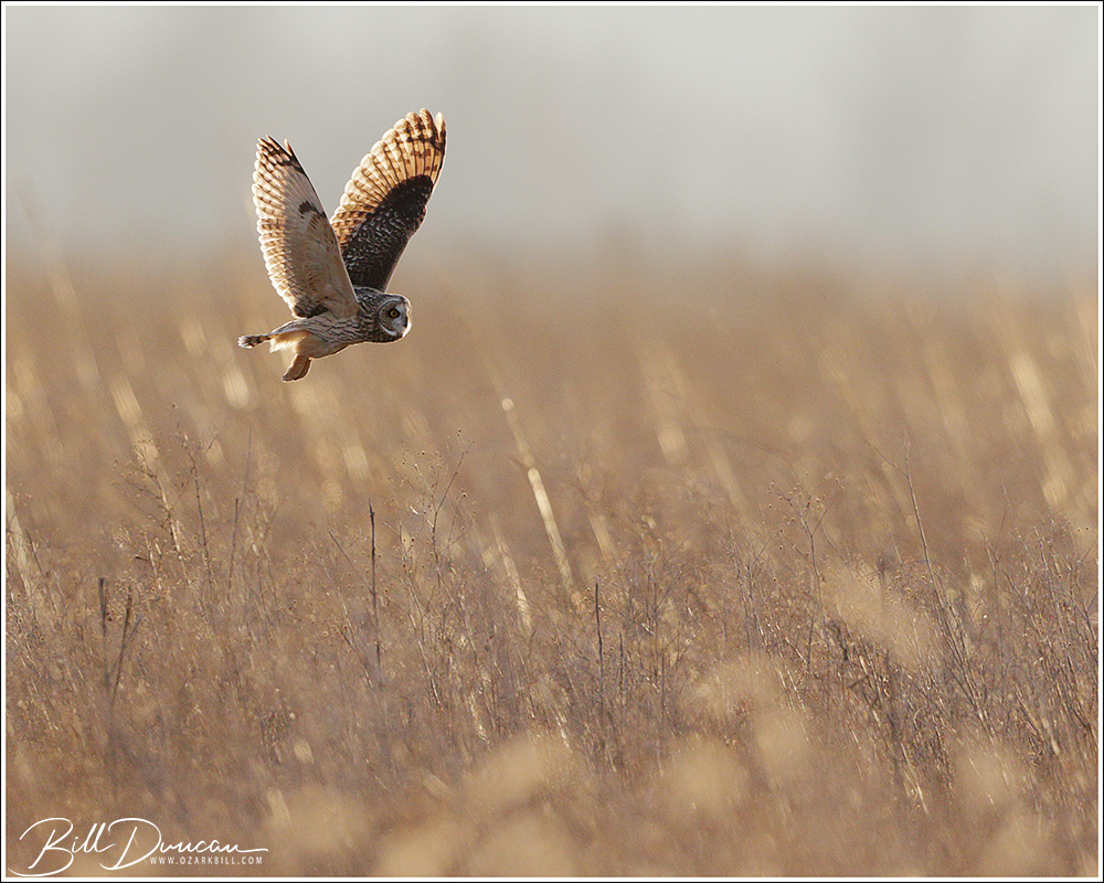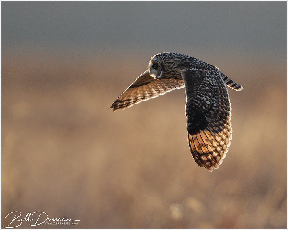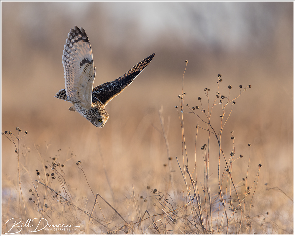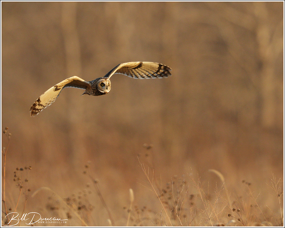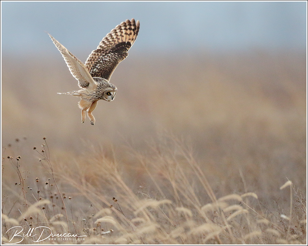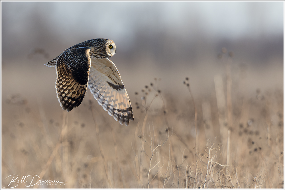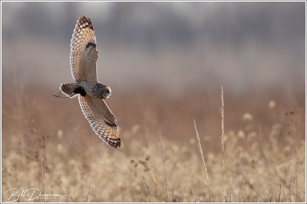 Another thing that makes Short-eared Owls so fascinating to observe is their vocalizations. These birds make sounds in a variety of ways. First, is their primary “hoot”. I have never heard this in person because this is primarily used by males in advertising for mates and establishing territories in the nesting season. You can, however, hear the barks and screams given by both males and females on their wintering grounds. The screams seem to be primarily given while in flight and the barks can be given in flight or while perched. I do not know the purposes of these two call types but will put this on my list to research. Another sound these birds deliver is the wing clap. This seems to be primarily used by males in their courtship flights and I have not observed this yet in Missouri.