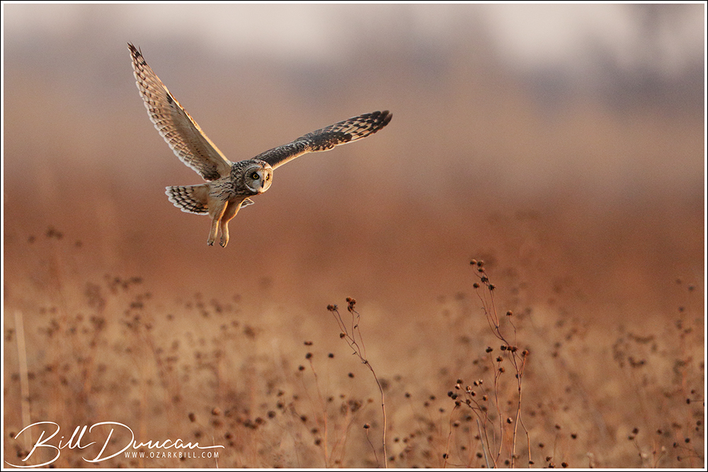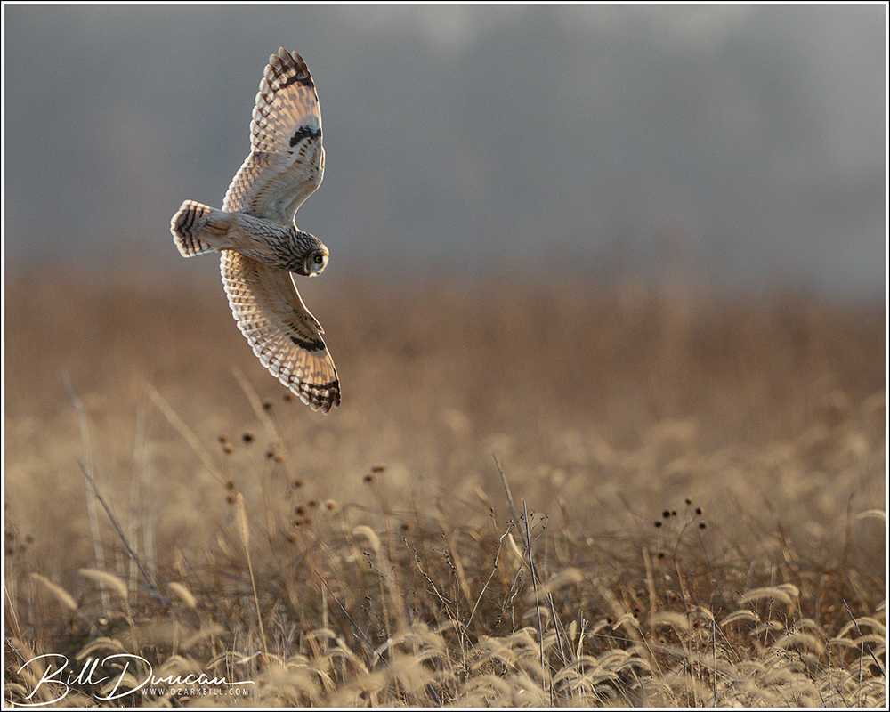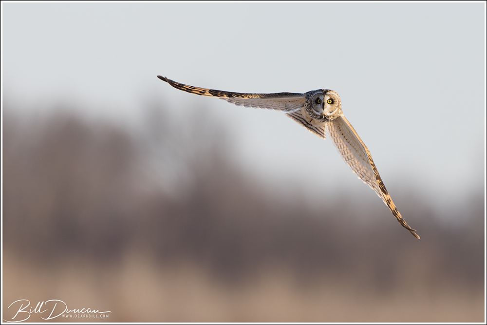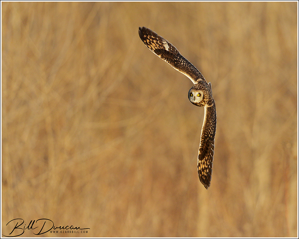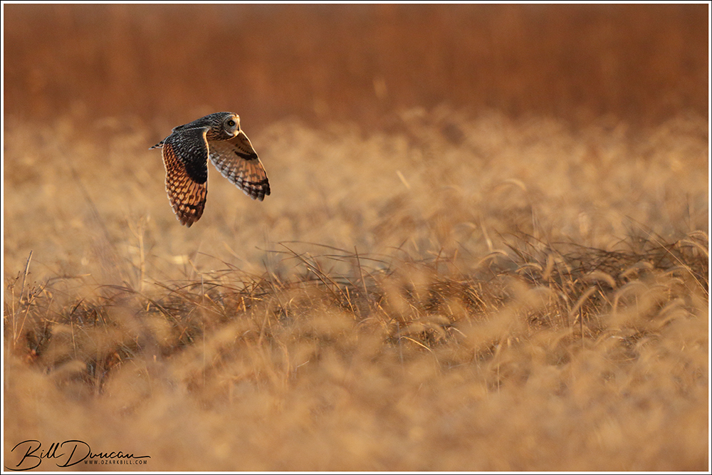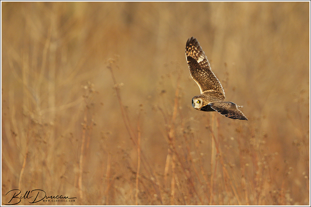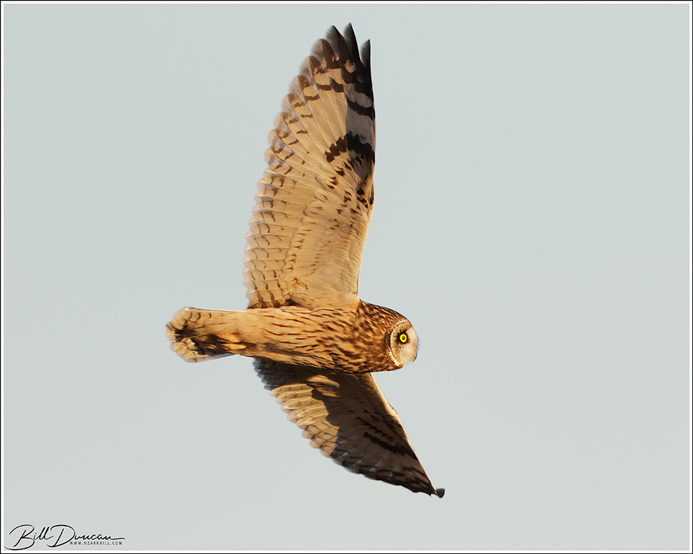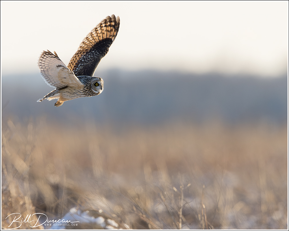 Another thing that makes Short-eared Owls so fascinating to observe is their vocalizations. These birds make sounds in a variety of ways. First, is their primary “hoot”. I have never heard this in person because this is primarily used by males in advertising for mates and establishing territories in the nesting season. You can, however, hear the barks and screams given by both males and females on their wintering grounds. The screams seem to be primarily given while in flight and the barks can be given in flight or while perched. I do not know the purposes of these two call types but will put this on my list to research. Another sound these birds deliver is the wing clap. This seems to be primarily used by males in their courtship flights and I have not observed this yet in Missouri.