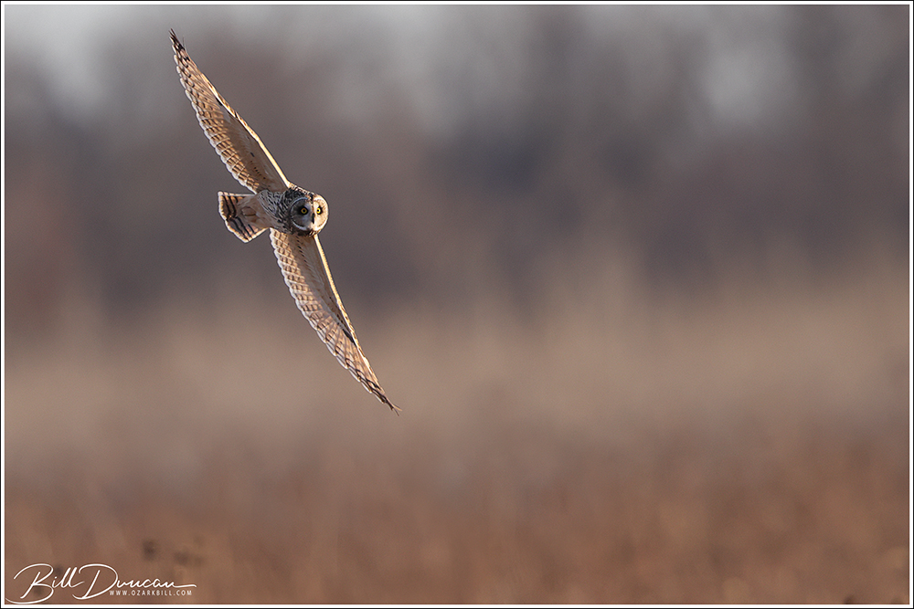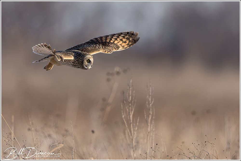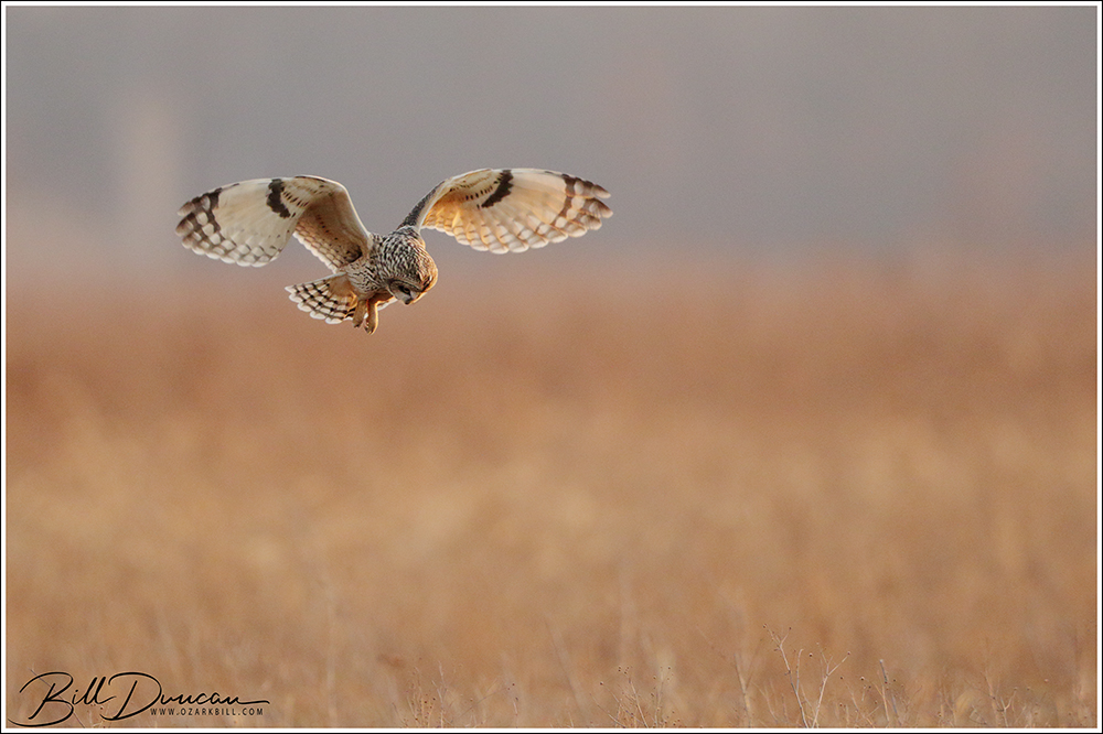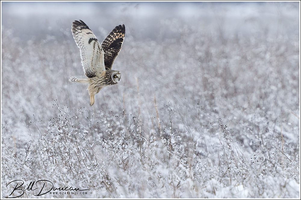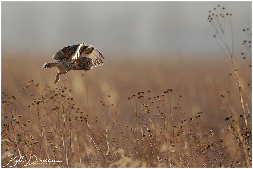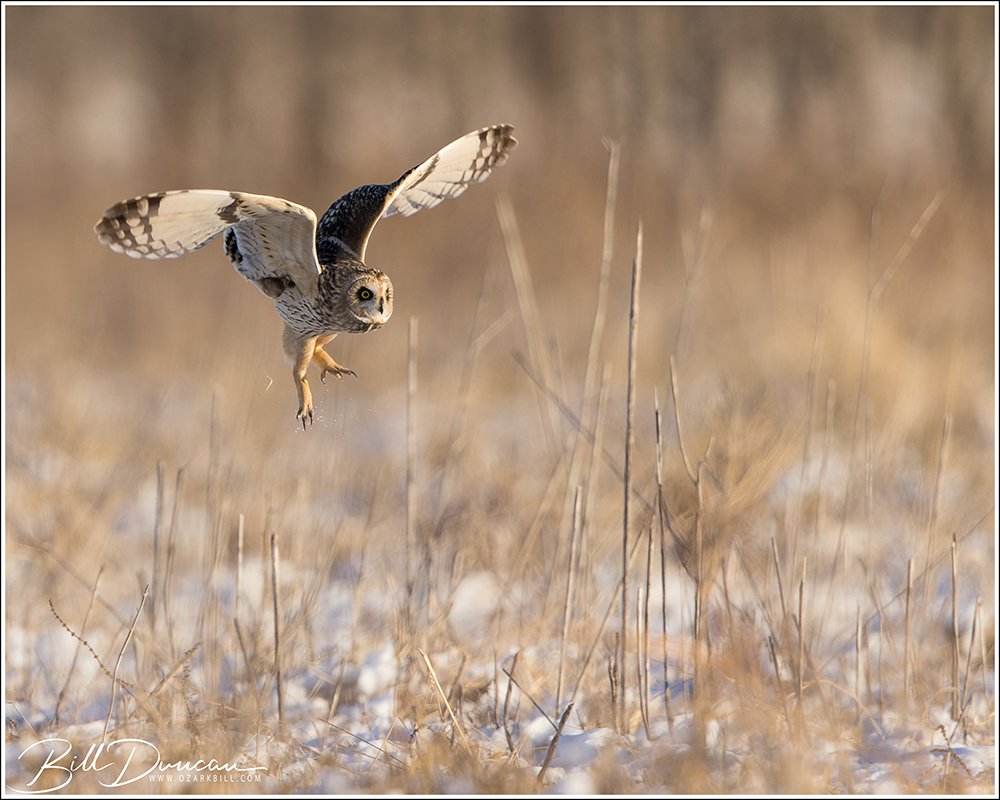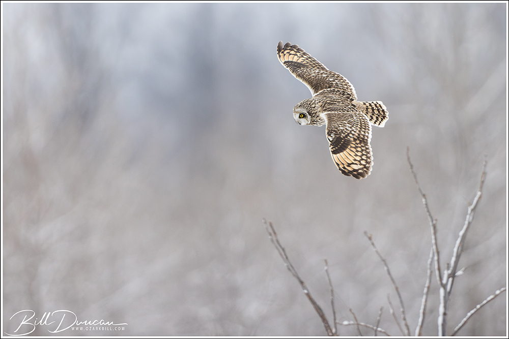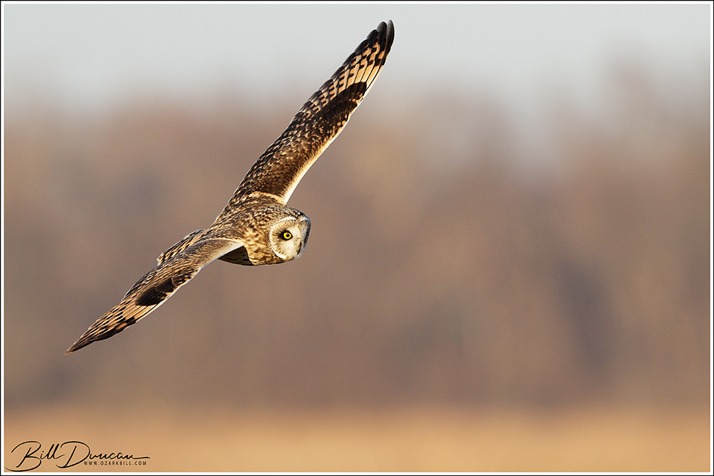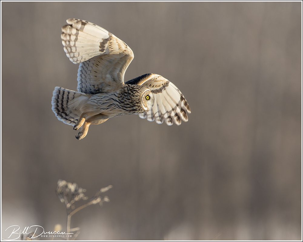 Another thing that makes Short-eared Owls so fascinating to observe is their vocalizations. These birds make sounds in a variety of ways. First, is their primary “hoot”. I have never heard this in person because this is primarily used by males in advertising for mates and establishing territories in the nesting season. You can, however, hear the barks and screams given by both males and females on their wintering grounds. The screams seem to be primarily given while in flight and the barks can be given in flight or while perched. I do not know the purposes of these two call types but will put this on my list to research. Another sound these birds deliver is the wing clap. This seems to be primarily used by males in their courtship flights and I have not observed this yet in Missouri.