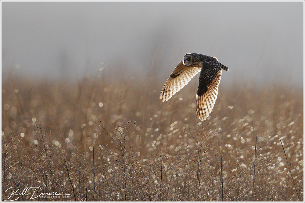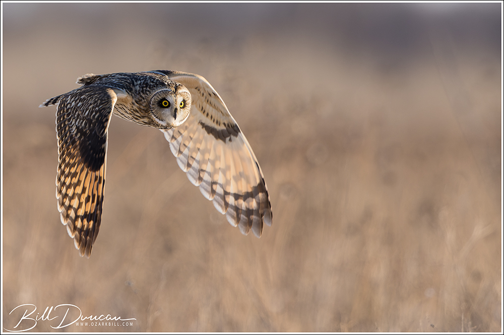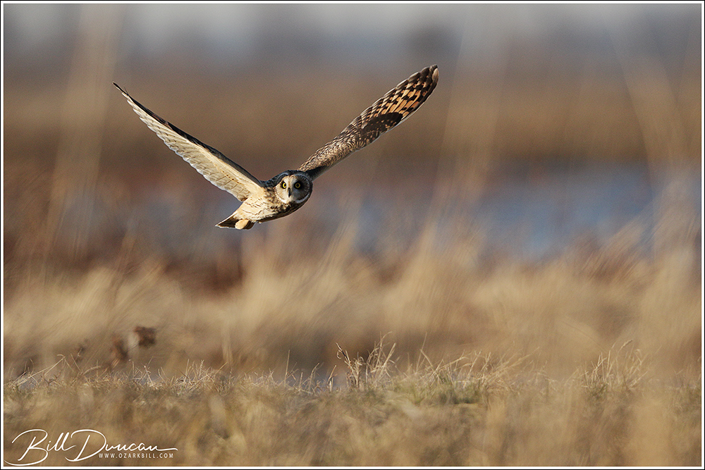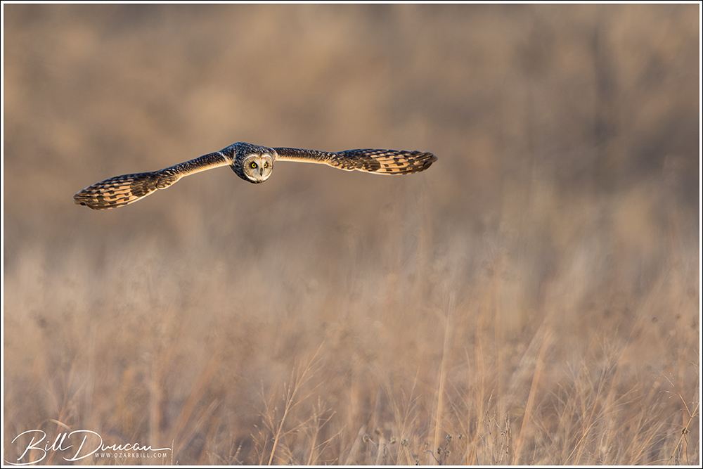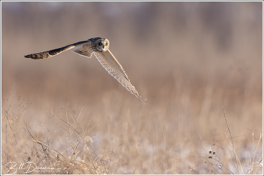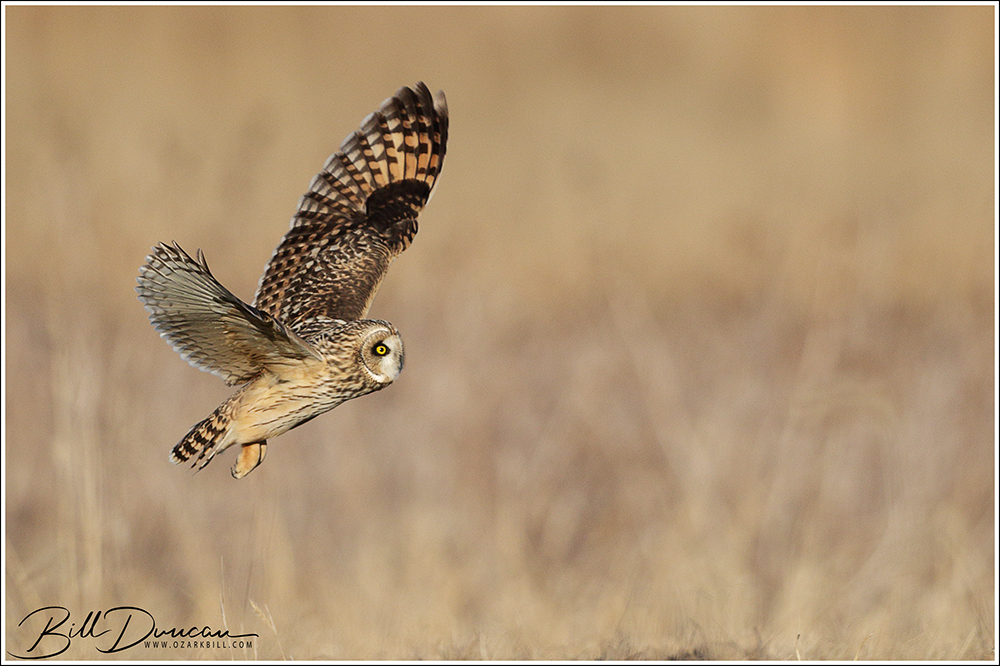 The Short-eared Owl is a unique flyer. Birder and author Pete Dunne described them as a “…pale beer keg on wings.” Just as apt, but completely different, many have described their flight as like that of a moth, with long, straight wings that give a buoyant and unpredictable pattern that is often mixed with long periods of gliding. They have the tools of a successful hunter and although they lack the speed and power of their neighbors – the Northern Harriers, their ability to fly agilely and without making a sound, allows them to pick up their rodent prey without much apparent effort.