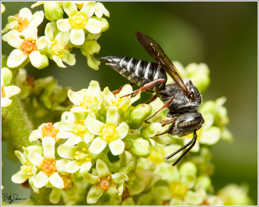 The Hymenoptera were well represented on blooms of wild hydrangea (Hydrangea arborescens), Queen Ann’s lace (Daucus carota) and as pictured above, fragrant sumac (Rhus aromatica). I find the native bees to be tricky to identify by photographs, but I believe this can be placed in the genus Agopostemon. These bees nest in the ground and to promote them, leave patches of soil exposed somewhere in your yard.