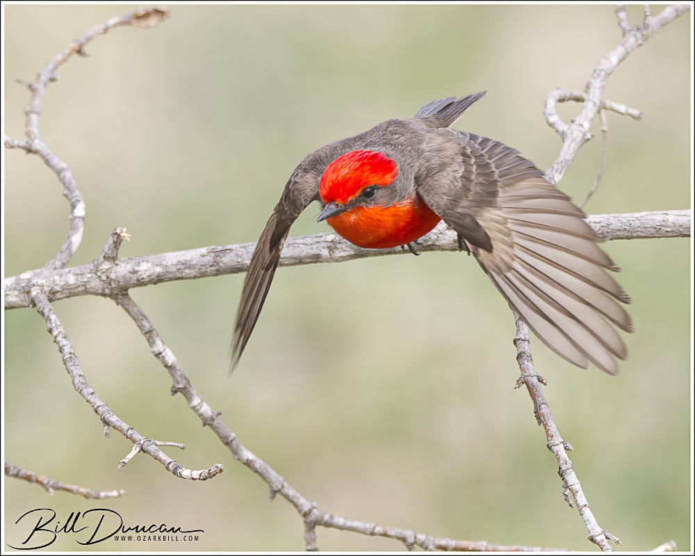 This beautiful Vermilion Flycatcher (Pyrocephalus rubinus) was recently found in the central Missouri’s Miller County. Many thanks to Chris Barrigar, who first found this bird and shared it with the birding community.