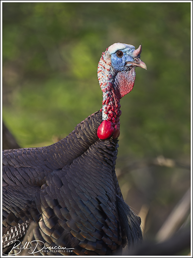 The snood (the dangling appendage that is overhanging this bird’s beak) is quite interesting. Until watching these guys recently, I was not aware of what control they had over it. When excited and wanting to display, they fill it with blood and it can turn a bright red.