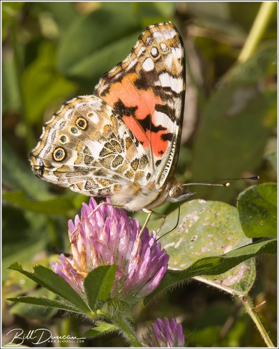 Being strictly found in the new-world, the American lady can be distinguished from the painted lady by the number of spots on the ventral sides of the hindwings. As seen in the photo above, the American lady has two large eyespots whereas its cousin, the painted lady, has four. Photographed at Horn’s Prairie Grove LWR in July.