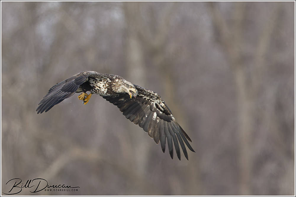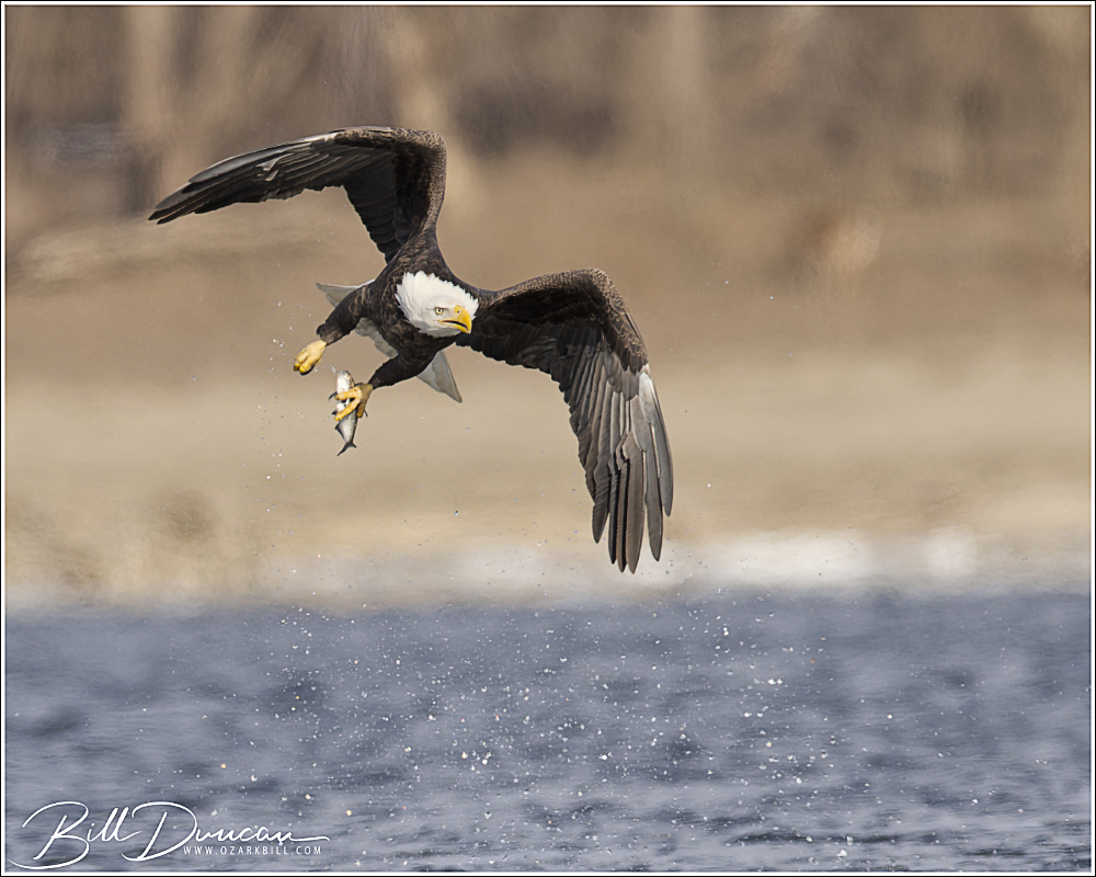You see this in a lot of the eagle shots that I post. I love that the birds always look closely at their catch, even as they are still getting the air back underneath their wings. Every-time they do this. I’m not sure if they’re inspecting the size of their meal, or if perhaps they’re just ensuring a good foothold on their prey.