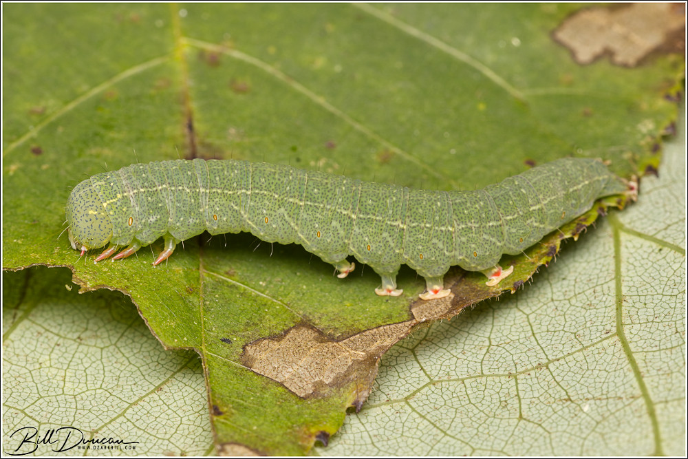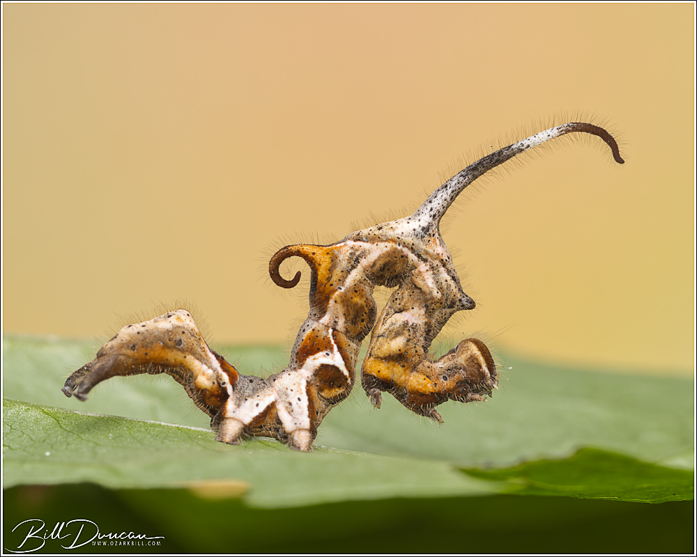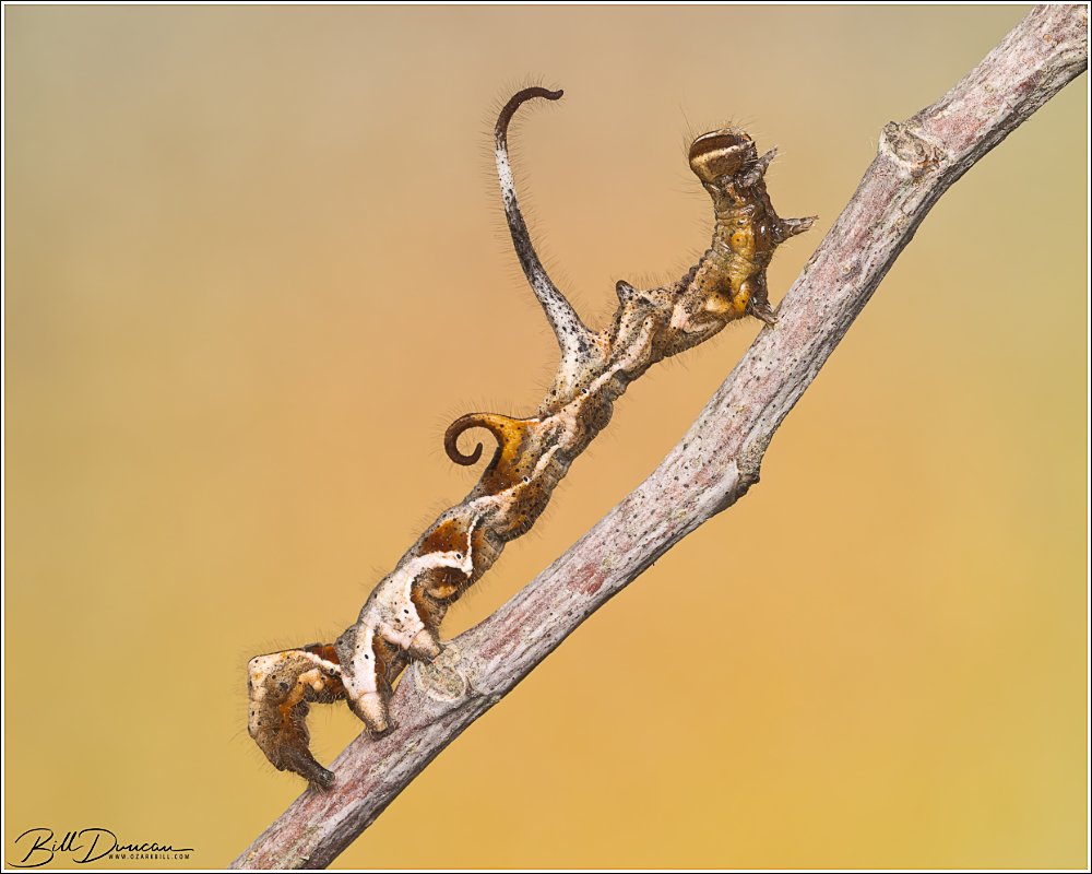 Notes: My favorite caterpillar species and one that I have not had the pleasure to find in over nine years! In all of the high-quality habitats I visit in Missouri during the late summer, I take the time to carefully investigate any greenbrier that I happen to find, always on the lookout for this magnificent creature. Imagine my surprise to find one in St. Louis County! Looking like it could have been the creation of Dr. Seuss or Tim Burton, this cat looks and behaves as though it might be a dead leaf or portion of a tendril of its greenbrier host. When disturbed, it will sway back and forth as if being simply a piece of detritus moving with the wind.