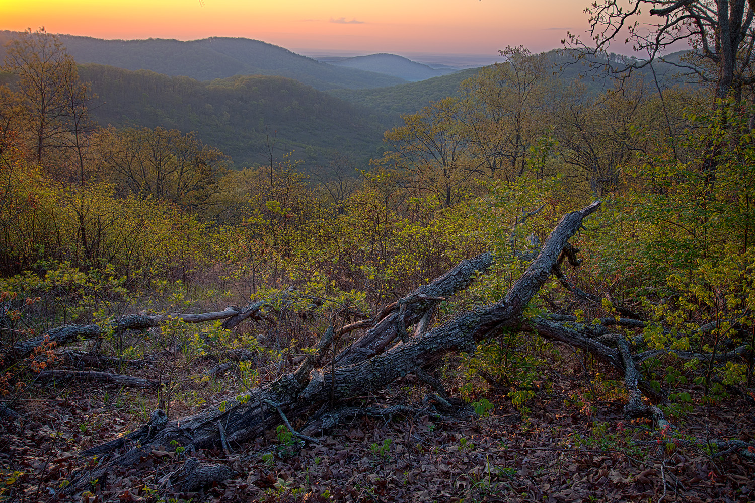 Forest covers the southern one-third of Missouri and the Shawnee NF in Illinois. Spring and autumn bring many landscape opportunities especially along the rivers and other water features. Wildflowers abound here through the growing seasons in the forest and in the spring and on rocky glades (opening between the woodlands) throughout the growing season. These are some of the more diverse forests in the country, with several species restricted to the Ozark Plateau. This is also a world class birding area.