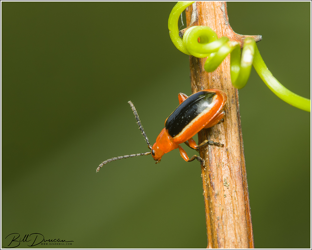 Just a couple weeks ago, my friend, Pete, posted a bunch of picks from his botany trip to southern Illinois on Facebook. As I perused through his collection of fascinating plants he found, I stopped at a photo of several beetles that were on a grape vine. In this photo was a single D. discoidea. Getting a little upset, I messaged Pete to see if he could tell me exactly where he had found this. He was at Giant City State Park and because of smartphone technology, he forwarded me his geotagged photo and I had access to exactly where he had taken the picture.