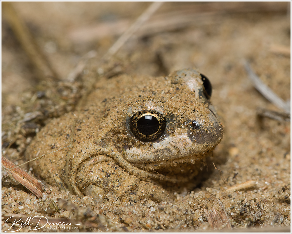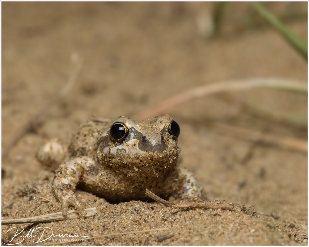 Illinois chorus frog (Pseudacris illinoensis) attempting to back itself under the sand