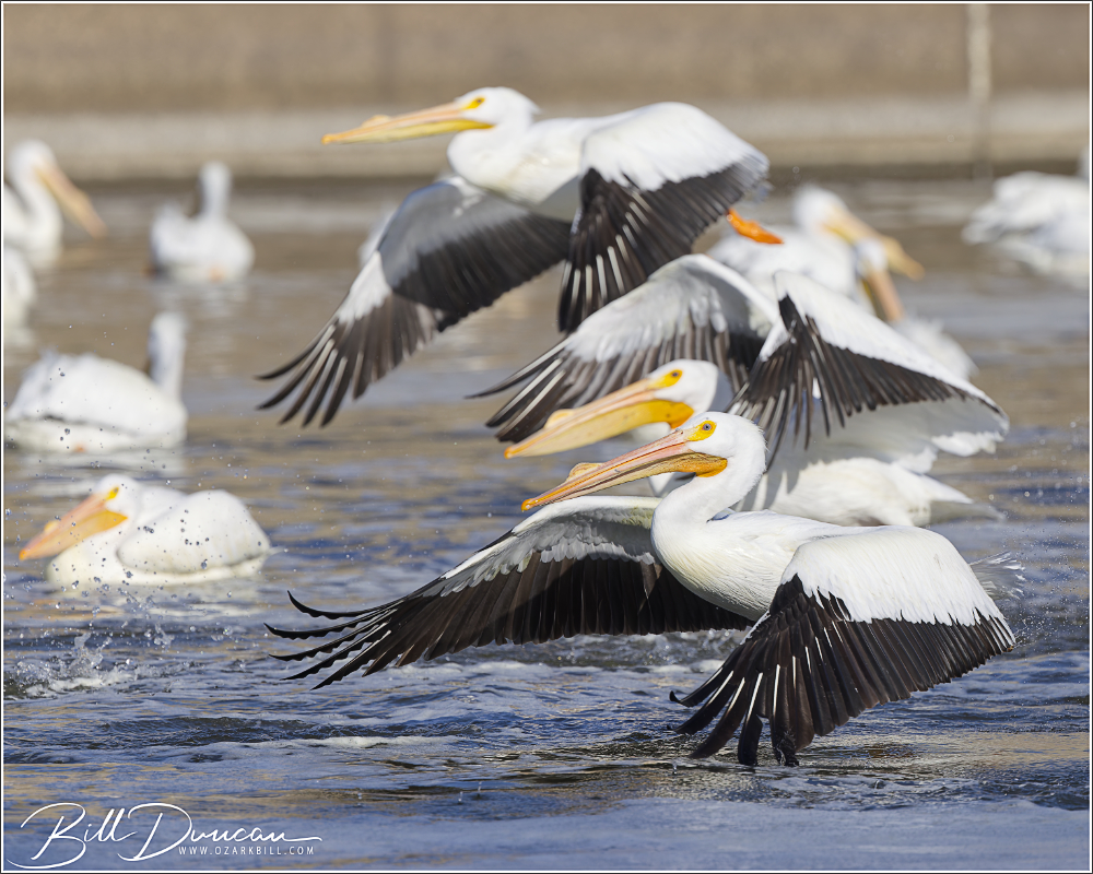 I took another trip recently to Carlyle Lake and had a blast photographing these American White Pelicans. There were far more than 1,000 of these giant birds, coming and going from the dam’s spillway.