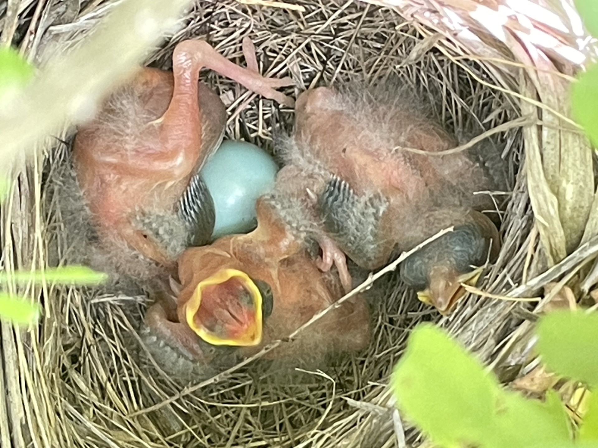 Another Gray Catbird nest we found this day with newly hatched chicks