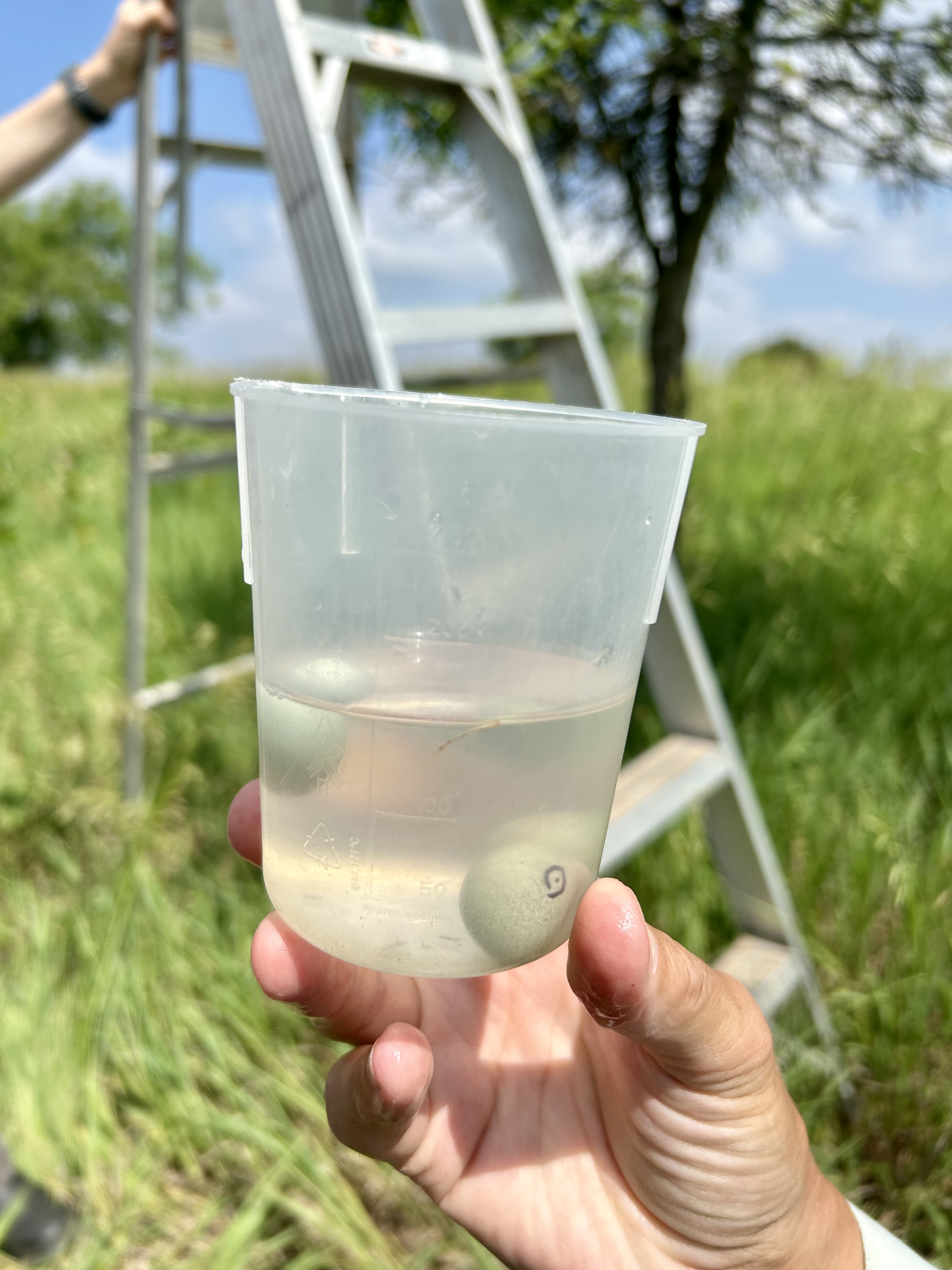 An egg buoyancy/density test is performed to determine egg age and potential viability