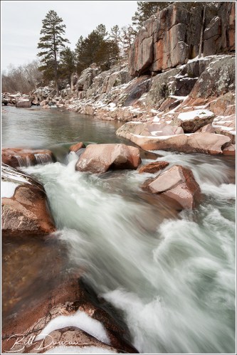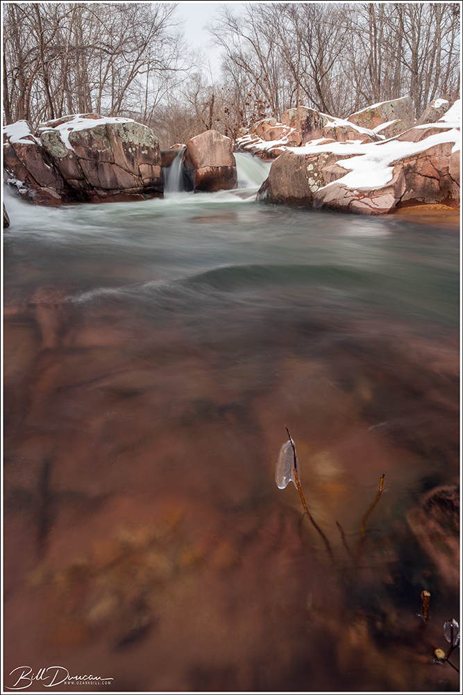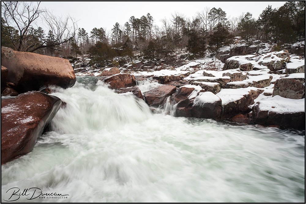 Miguel and I headed south early on Saturday morning. We arrived at Amidon Memorial Conservation Area in Madison County, MO long after first light, but early enough to get some good from what would turn out to be a very dynamic sky over most of the day. Castor River Shut-ins was our main target, as I knew we weren’t too far following some significant rainfall in the area and there was a fresh snowfall from the day before. Unfortunately, the total snow fall was nowhere near the forecast 3″-5″ that was supposed to blanket the Fredericktown/Farmington area. However, as a nature photographer knows, you take what you find.