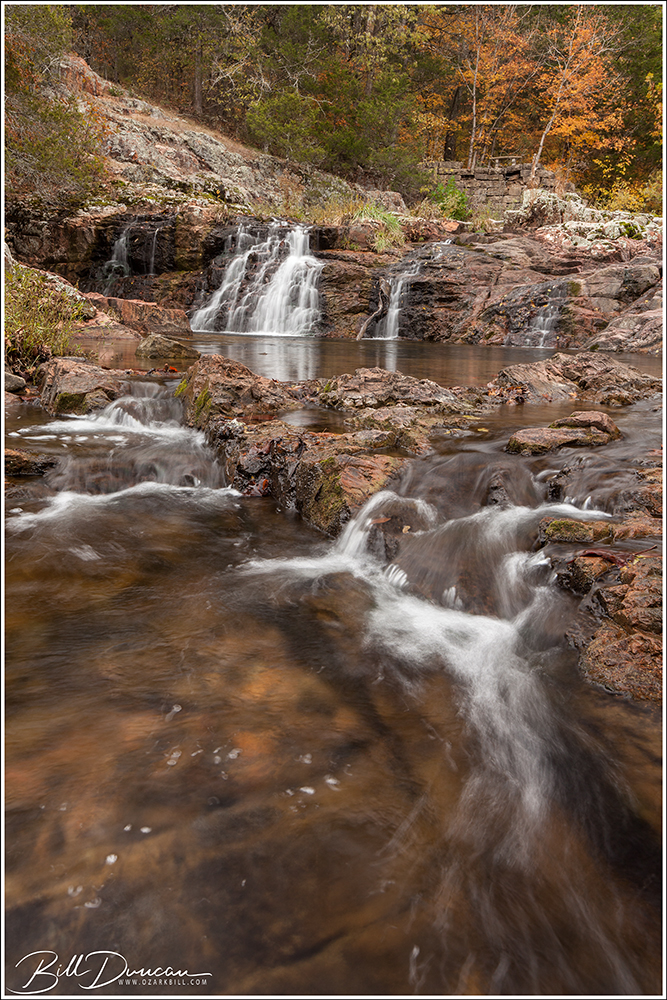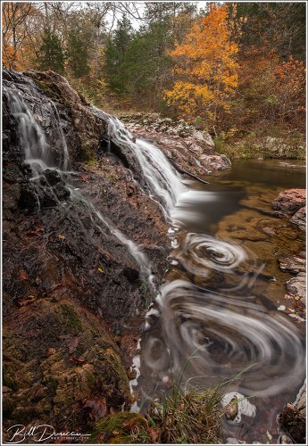 What turned out to be a very nice day of hiking and photography was nearly the complete opposite. On our way down to the river to make the above image, yours truly, normally as sure-footed as an Ozark billy goat, got one leg caught between two narrowly separated boulders while slipping with his other foot. As I went down, nearly landing on my face, I twisted my leg at just the right time and likely narrowly avoided snapping both my tibia and fibula in the caught leg. I also lost control of the tripod with the camera attached. Thankfully, most of the impact was to a small spot on the camera’s L-bracket, avoiding disaster again. Very-slight damage to the equipment and some bruising and scrapes to my leg – I will live with that when I think about the potential alternatives.
