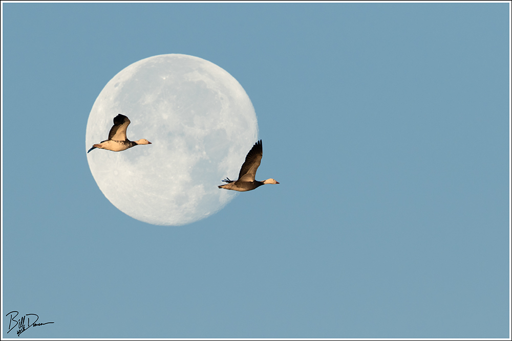 If conditions allow, getting the moon behind the Snow Geese can make a nice composition.